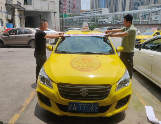 圖一愛心送考啟動(dòng)儀式 啟動(dòng)儀式上,出租車師傅精心打掃車內(nèi)衛(wèi)生,張貼了“愛心助考”的愛心標(biāo)志;并做好了車輛安檢、消毒等工作,準(zhǔn)備好口罩,時(shí)刻準(zhǔn)備著為“愛”出發(fā)。