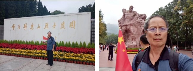 圖為自己在歌樂山革命烈士墓瞻仰、緬懷革命先烈留影