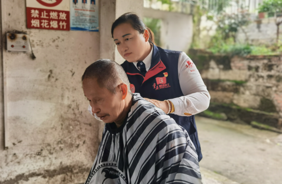 圖為:雷鋒車隊黨員雷音為老人理發(fā)