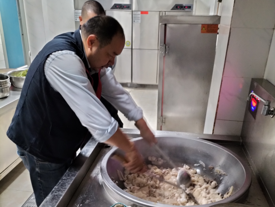圖為:雷鋒車隊黨員陳干為敬老院老人準備午餐