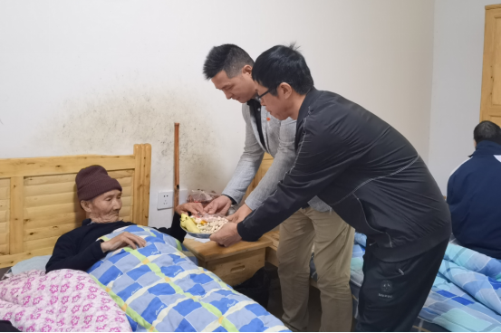 圖為:中共重慶美天東贏-恒康汽車運輸有限公司聯(lián)合支部書記為癱臥在床的老人送去節(jié)日禮物及祝福。