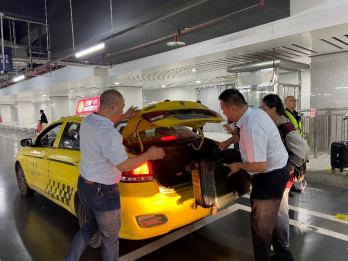 志愿者幫助乘客放行李 |