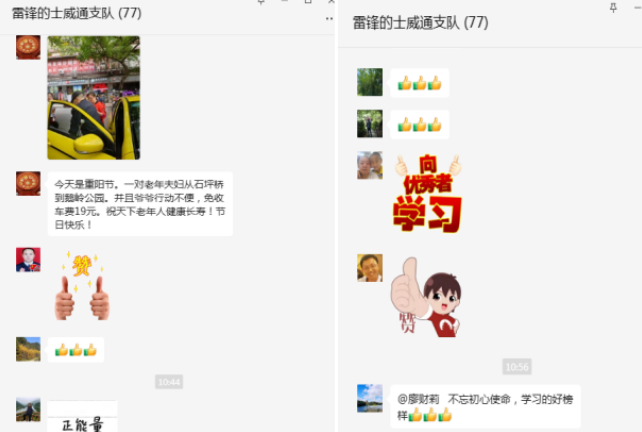 據(jù)了解,重陽節(jié)當(dāng)天,廖財莉駕車在石坪橋附近被路邊的一位老婆婆招停,當(dāng)看見婆婆身邊還扶著一位拄著雙拐的老大爺時,廖財莉趕緊靠邊停車,下車將兩位老人攙扶上了車。“婆婆爺爺你們好,重陽節(jié)快樂!你們打算去哪里呢?”經(jīng)詢問得知,老兩口準備去鵝嶺公園,由于老大爺行動不便,他們決定坐出租車過去。快到目的地時,廖財莉發(fā)現(xiàn)老婆婆準備掏錢付車費,趕忙說:“婆婆爺爺,今天免費為你們服務(wù)哈,祝你們節(jié)日快樂!”大爺聽了忙說:“這怎么好意思呢,現(xiàn)在的經(jīng)營環(huán)境都不好,你們也很難,打車費你得收著!”廖財莉笑著說:“沒事,今天是你們的節(jié)日,再說了,家家有老人,人人會變老,尊老愛老助老是我們應(yīng)該做的,祝你們和天下所有老人健康長壽!”說得兩位老人高高興興地離開了。 廖財莉助人為樂的精神獲得同事們紛紛點贊,公司總經(jīng)理黎志豐在公司雷鋒的士群里點贊并留言:“不忘初心使命,學(xué)習(xí)的好榜樣!”(圖文/陶敏)