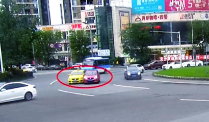 出租車駕駛員楊某故意碰瓷追尾隔壁車道車輛實施詐騙(視頻監(jiān)控截圖) (文/圖 的士報李嘉男) |