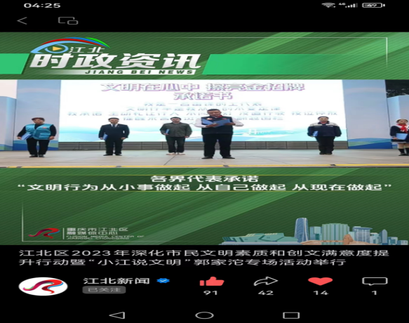 發(fā)表時(shí)間:2023-12-07 15:28作者:覃瑜來(lái)源:渝運(yùn)北岸 為持續(xù)推動(dòng)城市環(huán)境面貌和群眾精神風(fēng)貌不斷改善、使人民群眾的物質(zhì)文明與精神文明協(xié)調(diào)發(fā)展、與城市高質(zhì)量發(fā)展同頻共振,顯著提升人民群眾的獲得感、幸福感、安全感和認(rèn)同感。2023年11月24日,江北區(qū)政府在郭家沱街道舉行了“文明在心中、擦亮金招牌”公益活動(dòng)。