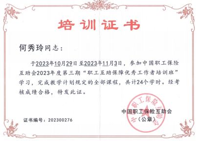 富海公司工會主席何秀玲參加 中國職工保障會優(yōu)秀基層工作者培訓會