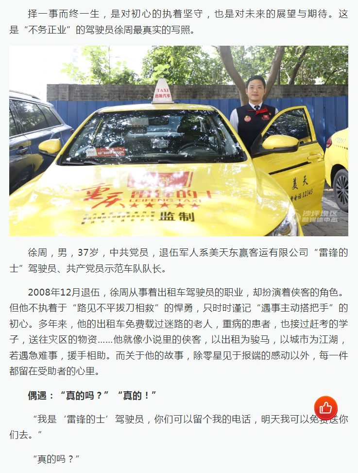 尋找沙磁好人 | 徐周:14年踐行初心使命 點(diǎn)滴善舉傳承雷鋒精神