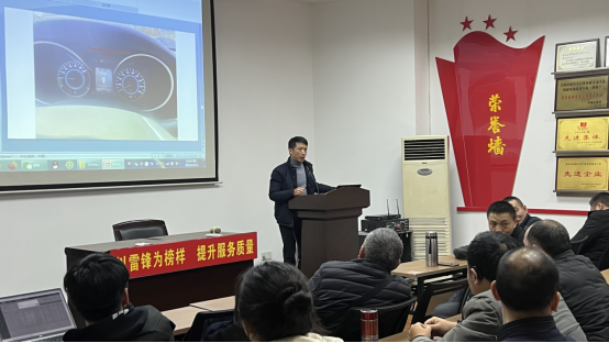 圖為重慶魯渝盈新能源汽車銷售服務有限公司的葉主管講解新能源車操作事宜 最后,安監(jiān)主管張勇結合自身駕駛新能源車輛的實際體會,給大家講授駕駛小技巧及相關注意事項,并再次叮囑參與本次培訓的駕駛員們,提高安全意識,筑牢安全防線。