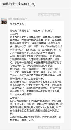 “雷鋒的士”公運(yùn)支隊(duì)在微信群發(fā)出捐資助學(xué)倡議書