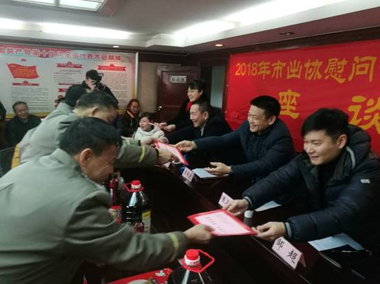 領(lǐng)導(dǎo)們在給困難駕駛員送春節(jié)慰問金