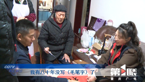 手寫“福”字貼起來 空巢老人開心過元宵 二維碼