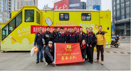重慶雷鋒的士泉承大隊(duì)和血液中心退休支部志愿者在一起 |