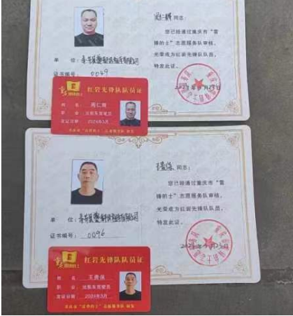 周仁輝和王貴保光榮成為紅巖先鋒隊隊員證書