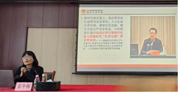 3月22日,上午9點、重慶公共運輸職業(yè)學(xué)院開展專題講座著力打造“紅巖先鋒”變革型組織研究。下午14點30分開展專題講座百年黨史的苦難與輝煌。晚上19點觀看紅色電影《建軍大業(yè)》。此次參加講座的人員有市雷鋒的士紅巖先鋒隊全體隊員、市出協(xié)黨委直屬黨支部書記。 一、中共重慶市委黨校袁冬梅授課 專題講座:為著力打造“紅巖先鋒”變革型組織研究 全面建設(shè)社會主義現(xiàn)代化國家,全面推進中華民族偉大復(fù)興,關(guān)鍵在黨。必須持之以恒推進全面從嚴治黨,深入推進新時代黨的建設(shè)新的偉大工程,以黨的自我革命引領(lǐng)社會革命。是二十大報告中提出。作為我們紅巖先鋒隊,我們必須堅持黨的領(lǐng)導(dǎo),發(fā)揮先鋒模范作用。以黨建為引領(lǐng),帶動隊建工作,推進基層黨建工作整體提升。 袁冬梅在專題講座上,將二十大報告相關(guān)內(nèi)容和市委袁家軍書記在市領(lǐng)導(dǎo)干部學(xué)習(xí)貫徹習(xí)近平新時代中國特色社會主義思想和黨的二十大精神研討班作輔導(dǎo)報告時強調(diào),新時代新征程上,我們要堅決扛起管黨治黨責(zé)任,大力弘揚光榮傳統(tǒng),賡續(xù)紅色血脈,健全全面從嚴治黨體系,與時俱進打造具備適應(yīng)和引領(lǐng)現(xiàn)代化能力的新時代“紅巖先鋒”變革型組織。她以二十大報告和袁書記講話精神為導(dǎo)向,引導(dǎo)授課開篇。并結(jié)合三個要點為紅巖先鋒隊員們進行宣講。 一是準(zhǔn)確把握打造“紅巖先鋒”變革型組織的意義。1、貫徹落實全面從嚴治黨的重慶實踐,全面從嚴治黨取得了歷史性、開創(chuàng)性成就2、與時俱進弘揚紅巖精神的具體實踐,打造“紅巖先鋒”變革型組織是新時代傳承紅巖精神的重要舉措。第一、處理好傳承與弘揚的關(guān)系,第二、處理好變與不變的關(guān)系,第三、處理好局部與全局的關(guān)系,順應(yīng)現(xiàn)代化新重慶建設(shè)的現(xiàn)實需要。 二是深刻理解“紅巖先鋒”變革型組織的豐富內(nèi)涵。建五型組織。1、學(xué)習(xí)型組織夯實變革根基2、以開放型組織擴展變革視野3、以創(chuàng)新型組織增強變革動力4、以服務(wù)型組織強化變革導(dǎo)向5、以效能型組織增強變革實效 三是掌握打造“紅巖先鋒”變革型組織的具體路徑。1、五項機制:例會機制、比拼機制、優(yōu)化“三服務(wù)”機制、口碑評價機制、案例復(fù)盤機制。2.“八張問題清單”與“七張報表”?!鞍藦垎栴}清單”:巡視、督查、審計、環(huán)保、網(wǎng)絡(luò)輿情、安全生產(chǎn)、信訪、社會平安穩(wěn)定。“七張報表”:建立完善黨建、經(jīng)濟、平安、改革、創(chuàng)新、生態(tài)、民生,推動重大決策落地、重大任務(wù)完成、重大風(fēng)險防控?!傲?。1. 推陳出新,在推進觀念現(xiàn)代化上下功夫。2. 由散到聚,在推動工作體系化上下功夫。3. 由軟轉(zhuǎn)硬,在促進運行法治化上下功夫。4、化繁為簡,在深化管理扁平化上下功夫。5. 化零為整,在加強平臺數(shù)字化上下功夫。6. 由虛入實,在強化能力實戰(zhàn)化上下功夫。 打造新時代“紅巖先鋒”變革型組織,是重慶對標(biāo)落實黨的二十大戰(zhàn)部署,結(jié)合重慶黨建特色和優(yōu)勢,重塑和建強各級黨組織,實現(xiàn)干部能力整體躍升,為推進新時代新征程新重慶建設(shè)提供堅強政治保證和組織保證而作出的重大舉措,也是地方層面把黨建落到實處的重慶探索,具有重要的現(xiàn)實意義。 當(dāng)前,重慶處于新的歷史關(guān)口,進入爬坡上坎的關(guān)鍵階段,打造新時代“紅巖先鋒”變革型組織的重大部署既是開局動員令,也是建設(shè)現(xiàn)代化新重慶科學(xué)詳實的“操作書”,我們要深入領(lǐng)會其豐富內(nèi)涵、目標(biāo)任務(wù)、實踐路徑,準(zhǔn)確把握其新理念、新思路、新辦法,在新征程上弘揚紅巖精神,發(fā)揮先鋒作用,聚焦“五型組織”具體目標(biāo),按照“一統(tǒng)六化”工作路徑,打造新時代“紅巖先鋒”變革型組織,進一步推動基層黨建工作全面進步、全面過硬,實現(xiàn)能力躍升,為全面建設(shè)社會主義現(xiàn)代化新重慶提供有力保障。