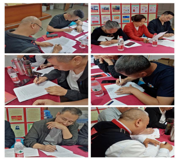 圖為黨員們填寫民主評議表及不記名投票 四、黨員不記名投票 根據(jù)民主測評要求,此次評定為優(yōu)秀的黨員比例一般不超過黨員總數(shù)的三分之一。黨員們在拿到2023年度《民主評議黨員測評表》后,認(rèn)真瀏覽黨員們的名字,并根據(jù)每月黨員大會時,支部書記在會上對個別黨員取得的優(yōu)秀成績和好人好事、公益活動參加情況,以及黨小組量化考核資料為參照,經(jīng)過深思熟慮,投下自己寶貴的一票。