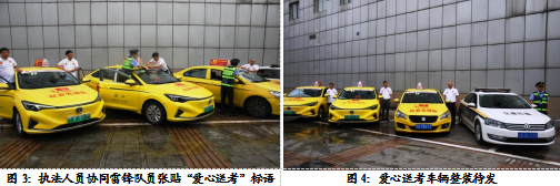 公司總經(jīng)理何萍要求:每一位送考駕駛員務(wù)必與考生及家長對接,做好接送考生的時間安排和行車線路規(guī)劃,要求駕駛員嚴(yán)格按照保平安、不收費(fèi)、不漏接、不遲到,完成此項任務(wù)。未擔(dān)任送考任務(wù)的“雷鋒的士”車輛及隊員,在營運(yùn)過程中,如遇路旁有因故急著乘車前往考點(diǎn)的考生,公司所有“雷鋒的士”車輛的駕駛員,都應(yīng)無條件免費(fèi)送達(dá)至考點(diǎn)。在每次出車前需對車輛進(jìn)行全面檢查,真正做到:車況好、車容好、技術(shù)好、服務(wù)好。