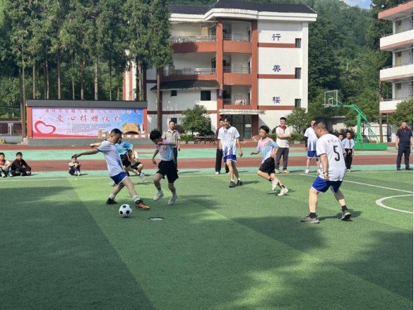 儀式結(jié)束后,協(xié)會的部分足球愛好者與同河小學(xué)的同學(xué)們進行了一場足球友誼賽,讓孩子們更加深刻地感受到團結(jié)、協(xié)作、拼搏、勇敢、爭先的的體育精神。 君暢黨支部希望以自己的微薄之力,傳遞更多的希望,助力學(xué)生在體育鍛煉中享受樂趣、增強體質(zhì)、健全人格、錘煉意志,用愛心助力放飛孩子們的體育夢想。