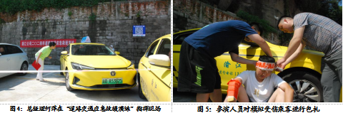 在模擬火情事件發(fā)生后,參與人員立即撥打報警電話,滅火行動人員攜帶滅火器,奔赴現(xiàn)場滅火,公司迅速啟動應急預案,各組按分工職責迅速投入搶險,安全疏散、扶持傷員撤離,轉移物資,整個演練過程井然有序。 通過此次消防應急演練,讓員工掌握了應急消防知識,鍛煉了員工應急處置的能力和協(xié)作精神,同時也使安全消防意識深入人心,演練達到了良好的效果。 二、道路交通應急救援演練 演練前,公司預先制定了詳細的應急方案,明確了各個崗位的職責和操作流程。在演練現(xiàn)場,模擬了兩輛出租汽車發(fā)生交通事故,造成兩車碰撞受損,一人受傷的交通事故現(xiàn)場,駕駛員先撥打120急救電話并報警,及時搶救傷員等安全應急措施,保證人民群眾的生命安全在第一時間內(nèi)得到救治。