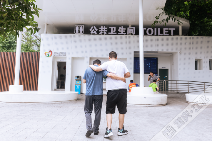 “過去4個(gè)小時(shí)了,小寒可能需要上廁所了?!?/span> 在重慶某個(gè)街邊的公廁,你可能會(huì)看到:一個(gè)170cm身高的瘦削中年男人,把一個(gè)183cm身高的年輕人從一臺(tái)網(wǎng)約車的副駕駛位上抱出來,馱在背上,一步一步艱難地往廁所里挪,打開廁所門,中年男人雙腿彎曲蹲下,讓年輕人坐在自己的兩條大腿上,一只手扶住年輕人,另一只手把門關(guān)上,最后用背抵住門……這樣的畫面幾乎每天都會(huì)出現(xiàn)。 在重慶,有一輛很特別的網(wǎng)約車,從它開始上路跑單起,副駕駛位上始終坐著一位特殊的“客人”。 這位“客人”很安靜,不怎么說話,每天陪著司機(jī)一起上班、下班……這名網(wǎng)約車司機(jī)叫易和平,這位“客人”叫易小寒,小寒是易和平的兒子,是他最愛的人,也是他現(xiàn)在生活的全部。 “對(duì)不起,副駕位有人了,他是我兒子,因?yàn)榛疾?,失去自理能力……”每次接單,易和平都?huì)提前和乘客溝通。這段話,他已經(jīng)重復(fù)了成千上萬遍。