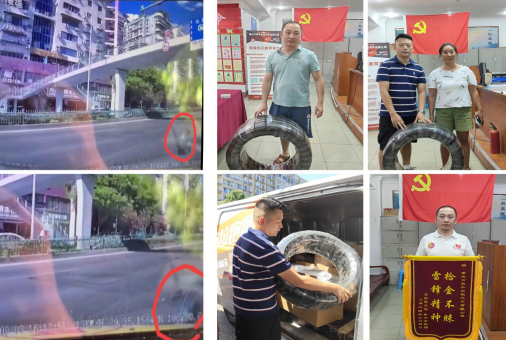圖為羅師傅撿到的輪胎支部書記幫助田女士送回 “書記,您好!我在花卉園東路與紅石路交叉路口處,撿拾到一個鄧祿普265/45R20尺寸,價值1000余元的大輪胎,我一會給公司送過去,好嗎?”羅師傅對公司書記說道。“好的,你送過來吧!一會失主找來,我們就及時還給他”書記對羅師傅說。于是,羅師傅將輪胎送了過來存放于辦公室。次日上午,失主打來電話,問撿拾輪胎事宜。公司書記則立即答復(fù),“輪胎在我司的,昨天駕駛員撿到后,送來的,你現(xiàn)在來取吧!”書記對失主田女士說道。待失主來到公司后,完善了失物招領(lǐng)手續(xù),書記將輪胎搬上了失主駕駛的貨拉拉車輛。臨走前,失主田女士,為泉承公司及羅師傅拾金不昧的行為豎起了大拇指。 2024年9月3日,下午16點17分,泉承公司渝A199T2號二星級“雷鋒的士”創(chuàng)建車輛,優(yōu)秀雷鋒隊員、支部優(yōu)秀發(fā)展對象羅強。駕駛雷鋒的士行駛在花卉園東路與紅石路交叉路口時,發(fā)現(xiàn)一個大輪胎從上坡一直往下滾動,于是他及時將車身靠向它,阻止它繼續(xù)向下滾動,因輪胎是處于逆行狀態(tài),有效避免了輪胎傷及其它車輛、摩托和行人。 由于當(dāng)時車輛停放路段,是正常行駛路段,加之車上有乘客,于是待輪胎停下后,羅師傅迅速下車查看,看是否有人來認領(lǐng)。等了2分鐘左右,也不見人來,他就將輪胎抱進了后備箱,再把車上乘客送完后,與公司取得聯(lián)系,并將輪胎交了回來。 9月4日,早上9點20分左右,失主田女士打來電話,才出現(xiàn)了上面那一幕對話。10點18分,田女士來到了公司,公司書記熱情接待田女士,向其講述了羅師傅撿拾輪胎的經(jīng)過。田女士了解后,對他拾金不昧的精神予以肯定,并說明了自己丟胎的原因,因自己是一名才從事貨拉拉不久的送貨司機,本知其車后門鎖有鎖不上的問題,又因自己駕駛不熟練,導(dǎo)致輪胎從貨箱里飛出了二條,一條被找回,還有一個被你們撿到。公司書記則對她說道:“還好沒有傷到人和車輛,不然就麻煩了,下次請一定注意?!薄笆堑?,這個事情謝謝你們了。”田女士回答說。于是,她拿出手機轉(zhuǎn)了50元感謝費給公司書記,讓其轉(zhuǎn)交給好心人羅師傅。羅師傅在得知后,果斷拒絕了田女士的好意,并把錢退了回去。他說道:“這是一點小事情,不應(yīng)該收錢的,貨拉拉失主掙錢也挺幸苦。”最后,田女士將退回的錢,為羅師傅做了一面名為“ 雷鋒精神 拾金不昧”的錦旗送給了他,以此表達,自已對他的感謝之情。 |
