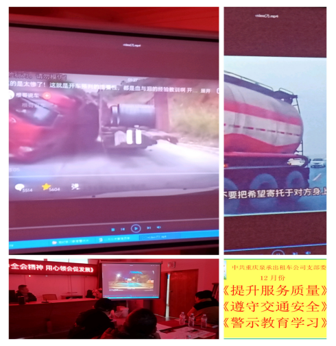 本次學(xué)習(xí),支部書記首先講述了近期服務(wù)質(zhì)量,并通過雷鋒的士報(bào)里的先進(jìn)黨員雷鋒隊(duì)員優(yōu)秀事跡作比喻,使之收獲和了解服務(wù)質(zhì)量提升的重要性。其次還為同志們提供了三部防御性駕駛視頻,進(jìn)行一同觀看。并在觀看后為其總結(jié)事故發(fā)生的經(jīng)過和預(yù)防措施。同志們?nèi)褙炞⒁曨l的同時(shí),也在腦海里加深了事故對(duì)一個(gè)家庭和自己造成不可估量的危害。警示教育是讓大家從中汲取經(jīng)驗(yàn)教訓(xùn),有效防止類似事故的發(fā)生。