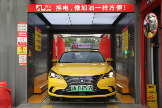 服務(wù)區(qū)功能齊全。圖為車輛在服務(wù)區(qū)進行換電