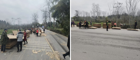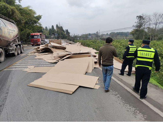 2月24日中午12時(shí)許,G319國道塘壩段上演了一場(chǎng)“緊急救援”。一輛車牌號(hào)為渝DG6338平板掛車因駕駛員不熟悉路況,轉(zhuǎn)彎時(shí)貨物滑落,瞬間鋪滿路面。潼南交通執(zhí)法支隊(duì)接報(bào)后迅速響應(yīng),執(zhí)法人員第一時(shí)間趕赴現(xiàn)場(chǎng)。 因貨物形狀特殊,機(jī)械裝載無從下手。面對(duì)滿地的“攔路虎”,執(zhí)法人員立刻啟動(dòng)應(yīng)急處置方案,化身“交通指揮官”和“搬運(yùn)協(xié)調(diào)員”。一組人手持熒光棒疏導(dǎo)車流,防止引起交通擁堵甚至交通事故;另一組人立即聯(lián)系搬遷隊(duì)伍,并發(fā)動(dòng)周邊村民加入“清障大軍”。 經(jīng)過5個(gè)小時(shí)暖心“接力”,17時(shí)20分,隨著最后一張貨物歸位,國道恢復(fù)了暢通。這場(chǎng)與時(shí)間賽跑的“護(hù)路行動(dòng)”,不僅零事故、零擁堵,更讓過往的司機(jī)紛紛豎起了大拇指。