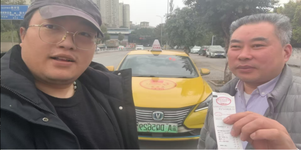 (圖為渝ADQ5629雷鋒的士駕駛員楊?yuàn)W杰免費(fèi)搭乘70周歲以上的乘客)