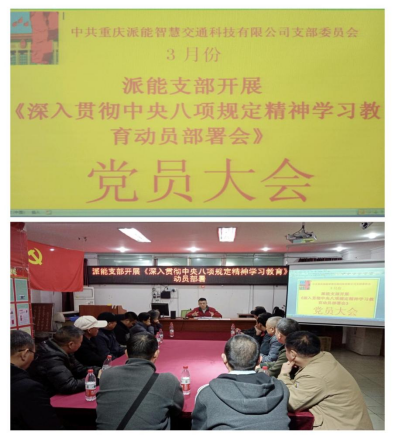 圖為支部書(shū)記文瑜在黨員大會(huì)上作動(dòng)員部署并講話 根據(jù)中共中央辦公廳印發(fā)《關(guān)于在全黨開(kāi)展深入貫徹中央八項(xiàng)規(guī)定精神學(xué)習(xí)教育的通知》,要求組織全黨認(rèn)真學(xué)習(xí)領(lǐng)會(huì)習(xí)近平總書(shū)記關(guān)于加強(qiáng)黨的作風(fēng)建設(shè)的重要論述,學(xué)習(xí)領(lǐng)會(huì)和貫徹落實(shí)中央八項(xiàng)規(guī)定及其實(shí)施細(xì)則精神。黨中央決定,自2025年全國(guó)兩會(huì)后至7月在全黨開(kāi)展深入貫徹中央八項(xiàng)規(guī)定精神學(xué)習(xí)教育,這是今年黨建工作的重點(diǎn)任務(wù)。 為深入貫徹中央八項(xiàng)規(guī)定精神學(xué)習(xí)教育,近日,根據(jù)上級(jí)黨委指示精神,各基層黨支部將按照重慶市出租汽車暨汽車租賃協(xié)會(huì)黨委,關(guān)于印發(fā)開(kāi)展深入貫徹中央八項(xiàng)規(guī)定精神學(xué)習(xí)教育實(shí)施方案的通知精神,逐項(xiàng)逐條嚴(yán)格落實(shí),以此保障此次任務(wù)圓滿完成。 按照指示要求,2025年3月31日下午13點(diǎn),派能支部組織全體黨員、預(yù)備黨員、入黨積極分子、入黨申請(qǐng)人齊聚支部會(huì)議室,召開(kāi)《深入貫徹中央八項(xiàng)規(guī)定精神學(xué)習(xí)教育》動(dòng)員部署會(huì),并將上級(jí)黨委精神逐一傳達(dá)。