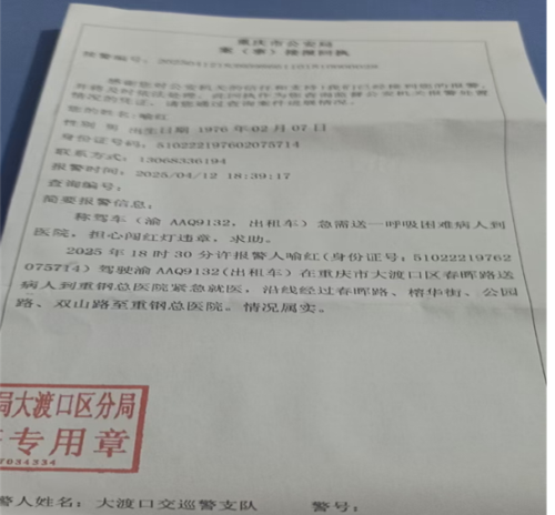 圖二、三交巡警出具的證明 在征得交警同意并確保行車安全的前提下,喻紅開啟了一場與時(shí)間的賽跑,一路鳴笛,雙閃長亮,連闖多個(gè)紅燈,風(fēng)馳電掣般將病人送到了醫(yī)院。 抵達(dá)醫(yī)院后,喻紅趕忙催促乘客抓緊進(jìn)去治療,還貼心地免去了車費(fèi),他真誠地對乘客說:“不用付錢,直接走就行!你現(xiàn)在治病要緊。” 在喻紅心中,此刻時(shí)間就是生命,救人要緊,車費(fèi)早已微不足道。 回想起這趟“闖紅燈救人” 的驚險(xiǎn)歷程,喻紅滿懷感恩。他感慨道,這不僅僅是他一個(gè)人的功勞,路上的眾多好心人也幫了大忙?!拔掖蛑p閃、按喇叭時(shí),很多車輛紛紛主動避讓,就連經(jīng)過路口時(shí),外賣小哥也停下車讓行,正是有了他們的配合,我才能以最快速度到達(dá)醫(yī)院?!?/span> 面對當(dāng)事人的贊揚(yáng),喻紅卻十分謙遜,他表示,作為一名出租車司機(jī),這不過是分內(nèi)之事,是自己應(yīng)該做的。 |
