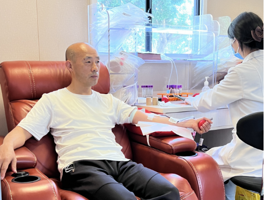 圖為高博雷鋒的士駕駛員司作義(黨員)無償獻(xiàn)血中
