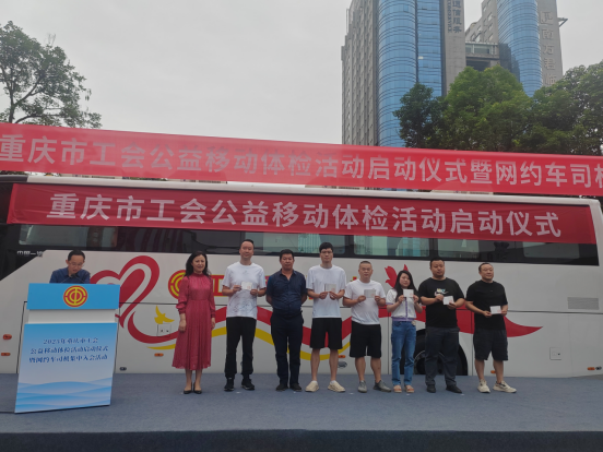 發(fā)表時(shí)間:2025-06-04 14:21作者:牛子福來源:協(xié)會(huì) 2025年6月4日上午,陽光明媚,重慶市出租汽車暨汽車租賃協(xié)會(huì)網(wǎng)約車分會(huì)迎來了一次具有深遠(yuǎn)現(xiàn)實(shí)意義的活動(dòng)——參加市總工會(huì)公益移動(dòng)體檢活動(dòng)啟動(dòng)儀式暨網(wǎng)約車司機(jī)集中入會(huì)活動(dòng)。此次活動(dòng)在九龍坡區(qū)登途驛站(重慶易馳店)隆重舉行,旨在進(jìn)一步關(guān)愛網(wǎng)約車司機(jī)這一新興就業(yè)群體,加強(qiáng)工會(huì)組織對(duì)他們的服務(wù)與保障,促進(jìn)網(wǎng)約車行業(yè)的健康、穩(wěn)定發(fā)展。市行業(yè)協(xié)會(huì)黨委書記陳衛(wèi)東、網(wǎng)約車分會(huì)會(huì)長譚貝、分會(huì)秘書長牛子福及市(區(qū))相關(guān)部門領(lǐng)導(dǎo)參加?;顒?dòng)由市總工會(huì)鄧康勝主持,現(xiàn)場氣氛熱烈而莊重。