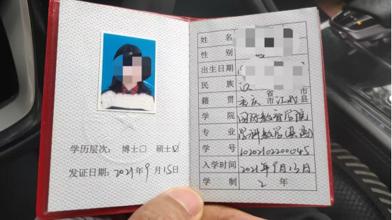 圖為:重慶“雷鋒的士·紅巖先鋒隊(duì)”公運(yùn)黨小組黨員周必勇在車上拾到的研究生證。