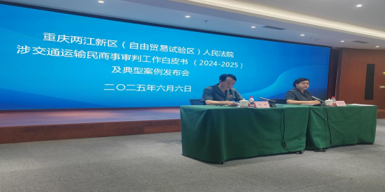 發(fā)表時(shí)間:2025-06-09 10:42作者:牛子福來源:協(xié)會(huì) 2025年6月6日上午,重慶兩江新區(qū)(自貿(mào)區(qū))人民法院涉交通運(yùn)輸民商事審判工作白皮書及典型案例發(fā)布會(huì)在兩江新區(qū)(自貿(mào)區(qū))人民法院數(shù)據(jù)管理中心召開。參加會(huì)議的有全國(guó)(市)人大代表殷其龍、謝雪梅、馬琴,市交通委法規(guī)處長(zhǎng)肖建、市政府口岸和物流處長(zhǎng)蔡湛、市交通運(yùn)輸人民調(diào)解委員會(huì)主任蔣夏、國(guó)際物流口岸服務(wù)協(xié)會(huì)秘書長(zhǎng)蔣嘯冰,市出租汽車暨汽車租賃協(xié)會(huì)網(wǎng)約車分會(huì)秘書長(zhǎng)牛子福及兩江新區(qū)(自貿(mào)區(qū))法院交通運(yùn)輸審判庭全體工作人員參加了發(fā)布會(huì)。會(huì)議由兩江新區(qū)(自貿(mào)區(qū))法院黨組成員、副院長(zhǎng)趙彬主持。 交通運(yùn)輸審判庭副庭長(zhǎng)王雁苗向與會(huì)人員介紹了涉交通運(yùn)輸民商事審判工作白皮書(2024-2025)及典型案例(圖一、圖二)