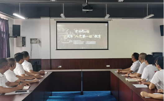 圖為:威通黨小組集中觀看專題黨課教育視頻《入黨第一課》