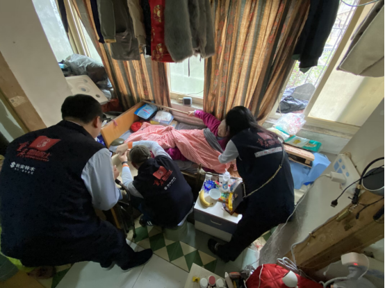 圖為:在馮婆婆生病期間公運(yùn)黨小組黨員看望慰問(wèn)馮婆婆。