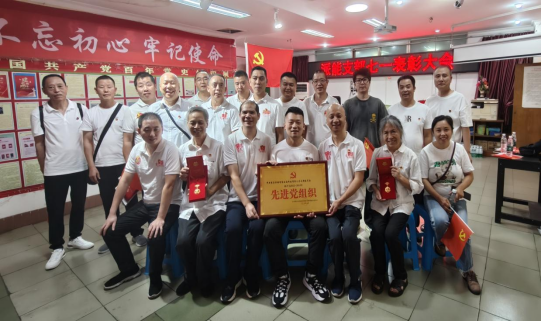 圖為派能黨支部全體黨員們?cè)谄咭槐碚么髸?huì)現(xiàn)場(chǎng)合影留念 |