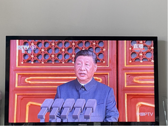 圖為:中共中央總書記、國家主席、中央軍委主席習近平在閱兵式上發(fā)表重要講話