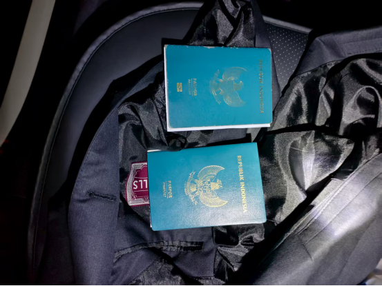 圖為:乘客遺失在車后排座位上的衣服和護(hù)照。