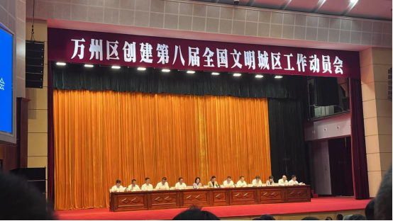 圖為:重慶萬州區(qū)第八屆文明城區(qū)創(chuàng)建工作動員會現(xiàn)場。