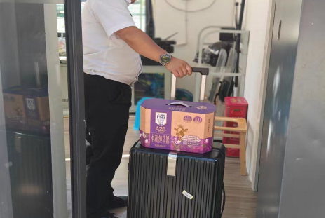 圖為:駕駛員秦廷秀按約定將行李箱和牛奶送到失主所在學(xué)校門衛(wèi)室 |