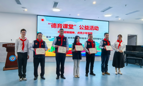 活動(dòng)現(xiàn)場(chǎng),同學(xué)們?yōu)榕c會(huì)人員佩戴上鮮艷的紅領(lǐng)巾,活動(dòng)在《中國少年先鋒隊(duì)隊(duì)歌》中拉開帷幕。隨后,學(xué)校領(lǐng)導(dǎo)為殷其龍、王彪頒發(fā)了“校外輔導(dǎo)員”證書,聘請(qǐng)他們擔(dān)任第二批校外輔導(dǎo)員,陳衛(wèi)東擔(dān)任重慶“雷鋒的士·紅巖先鋒隊(duì)”校外總輔導(dǎo)員。這不僅是一份榮譽(yù),更是一份沉甸甸的責(zé)任,激勵(lì)隊(duì)員們以實(shí)際行動(dòng)踐行雷鋒精神,成為孩子們成長路上的引路人。