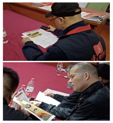 圖為李勁、盧忠軍兩名支委在翻閱《重慶雷鋒的士》報(bào)中 四、專題研討 在學(xué)習(xí)后,支部書記與全體黨員同志們一起共同學(xué)習(xí)交流討論。從中進(jìn)一步加深了對(duì)中央八項(xiàng)規(guī)定精神及其實(shí)施細(xì)則理論知識(shí)的積累與掌握。支部書記強(qiáng)調(diào):此次黨委擴(kuò)大學(xué)習(xí)會(huì),在黨委書記陳衛(wèi)東同志以及各黨委委員的領(lǐng)學(xué)下,各支部負(fù)責(zé)人,機(jī)關(guān)全體黨員,更加清醒的認(rèn)識(shí)中央八項(xiàng)規(guī)定精神及其實(shí)施細(xì)則的重要性和必要性,為黨風(fēng)廉政建設(shè)以及關(guān)于加強(qiáng)黨的作風(fēng)建設(shè)打下了堅(jiān)實(shí)的基礎(chǔ),并提供了有跡可尋的數(shù)據(jù)支撐。同時(shí),會(huì)議認(rèn)真學(xué)習(xí)了習(xí)近平總書記在各場(chǎng)合發(fā)表的重要講話精神,從中為促進(jìn)黨的領(lǐng)導(dǎo)、黨的政策、黨的任務(wù)、黨的方向,指明了前進(jìn)的道路。 在開(kāi)展深入學(xué)習(xí)貫徹中央八項(xiàng)規(guī)定精神學(xué)習(xí)教育以來(lái),黨員同志們用每一次客運(yùn)服務(wù),努力認(rèn)真的服務(wù)好每一名乘客。在遇到老年人時(shí)主動(dòng)免費(fèi)搭載;遇到小朋友乘車時(shí)耐心交談并安全送達(dá);遇到殘疾人時(shí)主動(dòng)下車攙扶,噓寒問(wèn)暖為其提供必要幫助;遇到遺失物品的乘客主動(dòng)免費(fèi)送回;期間,有的乘客遺失物品未聯(lián)系上的,黨員們積極尋找失主,無(wú)果時(shí)主動(dòng)送往失物招領(lǐng)中心。一件件一樁樁事件,體現(xiàn)了同志們對(duì)中央八項(xiàng)規(guī)定的深刻認(rèn)識(shí),將所學(xué)知識(shí),積極運(yùn)用到每一次工作中。在學(xué)習(xí)中,同志們認(rèn)真開(kāi)展線上、線下集中學(xué)習(xí),網(wǎng)上學(xué)習(xí),旨為將學(xué)習(xí)教育學(xué)深悟透,努力達(dá)到知信行統(tǒng)一,力求學(xué)以致用。 在開(kāi)展學(xué)習(xí)教育期間,全體黨員同志們將每一次工作中幫助群眾的事跡,寫進(jìn)了心得體會(huì)里,他們用心用愛(ài)用情溫暖著每一名群眾,把為人民服務(wù)當(dāng)作了自己的初心和使命,踐行了黨的宗旨。以在黨為公,執(zhí)政為民的態(tài)度和思想,融入日常,化作經(jīng)常,努力為道路運(yùn)輸行業(yè)作出自己的貢獻(xiàn)。