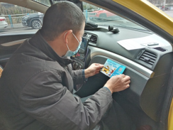 圖為雷鋒隊(duì)員正在車內(nèi)副駕位處張貼友情提示。