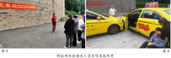 二、實(shí)戰(zhàn)演練,錘煉應(yīng)急本領(lǐng) (一)道路交通安全應(yīng)急演練 演練模擬出租車行駛中常見突發(fā)場景:一是車輛行駛中突發(fā)爆胎,駕駛員迅速采取“穩(wěn)方向、緩剎車、靠邊?!币?guī)范操作,快速設(shè)置警示標(biāo)識并聯(lián)系救援;二是模擬兩車輕微碰撞及人員受傷場景,駕駛員立即報警報備、保護(hù)現(xiàn)場,駕駛員同步開展傷員的模擬救治;三是針對雨天路滑、緊急避讓等場景,演示安全駕駛規(guī)避技巧,強(qiáng)化了“先防護(hù)、后處置”的安全意識。