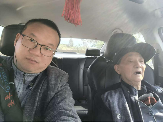 圖為:第七黨小組南川高彬正在免費送老人回家途中