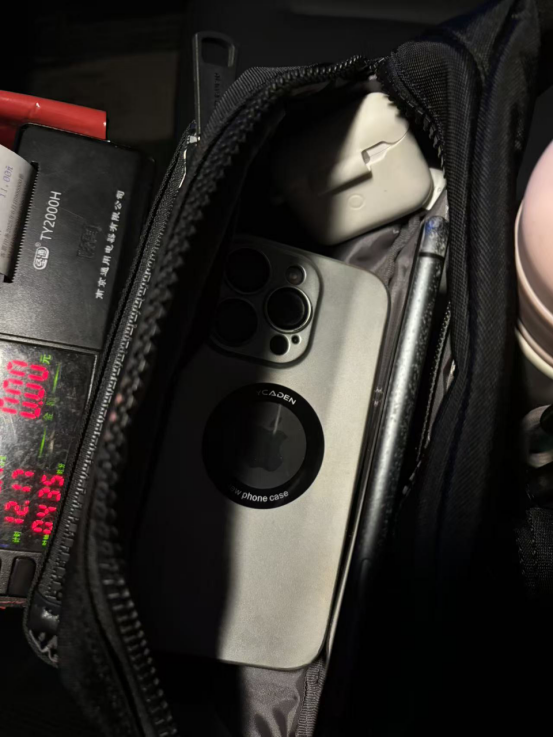 圖為:陳軍在車上拾到的斜挎包