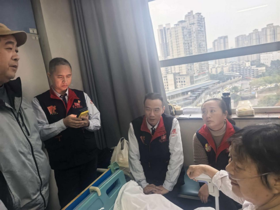 發(fā)表時間:2026-01-04 11:07作者:趙德良來源:東贏 重慶“雷鋒的士”美天支隊隊員左勇,多年來深耕公益志愿服務(wù)一線,始終秉持初心、扶危濟困,以點滴善舉踐行雷鋒精神與志愿精神。近日,其母親羅吉明突發(fā)疾病住院,歷經(jīng)二十余天醫(yī)治順利完成心臟手術(shù),累計醫(yī)療開支已超十萬元,后續(xù)康復仍需持續(xù)投入,家庭承受較大經(jīng)濟壓力。 助人者人恒助之,見隊友有難,重慶“雷鋒的士”美天支隊迅速牽頭行動,于2025年12月29日組織美天雷鋒車隊隊友伸援手、獻出愛心,27名隊友踴躍捐款,共籌善款2550元。當日下午,張奇林、夏宗斌、劉建、黃興平等隊員代表,攜善款及水果、牛奶等慰問品,專程前往袁家崗重醫(yī)附一院探望慰問,送去集體的暖心關(guān)懷。 點滴愛心匯聚暖流,同心幫扶紓難解困,全力為隊友家庭減輕負擔、助力老人早日康復。此次是美天支隊本月第二次為困難隊友發(fā)起捐助,充分彰顯了美天支隊互助互愛、團結(jié)奮進的優(yōu)良傳統(tǒng),讓雷鋒精神在守望相助中賡續(xù)傳承、熠熠生輝。