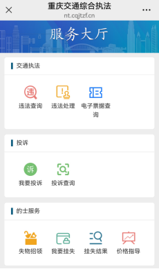 關(guān)注“重慶交通執(zhí)法總隊”公眾號,在“服務(wù)大廳”相關(guān)欄目查詢 |