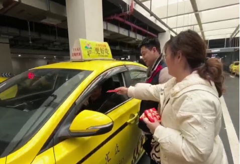圖為管理團(tuán)隊(duì)在重慶西站給駕駛員送紅包